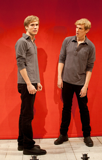 Like much of Albee’s work, Me, Myself & I hones in on the comic barbarity of domestic dysfunction with characters who seem unable to understand each other — or their own motivations — on even the most basic level. The twins’ overbearing, queen-bee of a mother goes into fits of circular logic, attempting, for instance, to justify her unfathomable decision to give identical names to her identical sons. At the same time, she laments that she herself can’t tell the two boys apart, and her inability to do so has predictably turned the Ottos into whiny bags of alienation and insecurity. Albee, who himself was adopted, is clearly exploring the existential side of identity and duality. However, his use of twin characters to indulge his preoccupation with the self will draw inevitable comparisons to the 2002 film “Adaptation,” in which the real-life screenwriter Charlie Kaufman conjured up a fictionalized version of himself and the twin brother he never had. But where Kaufman did not shy away from exposing the abject humanity of his dual alter egos, Albee seems more concerned with abjectness for its own sake.